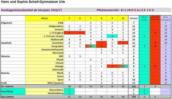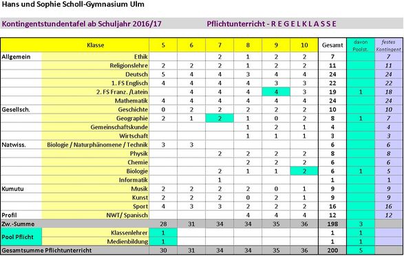 Kontingentstundentafeln des Hans und Sophie Scholl-Gymnasiums